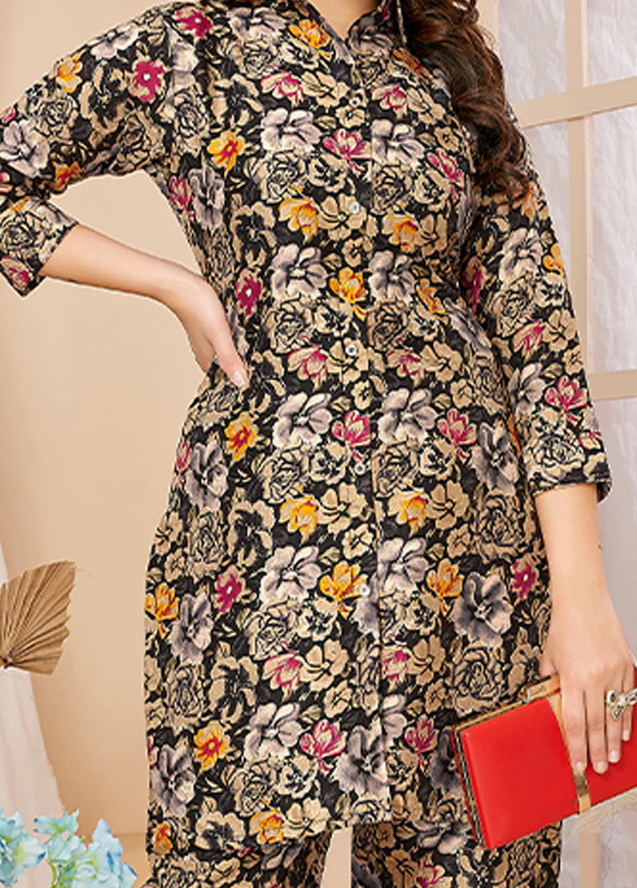 2 Pc Black Readymade Rayon Kurti Set