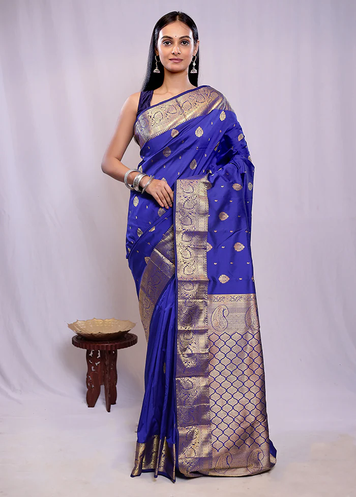 Blue Kanjivaram Silk Saree With Blouse Piece