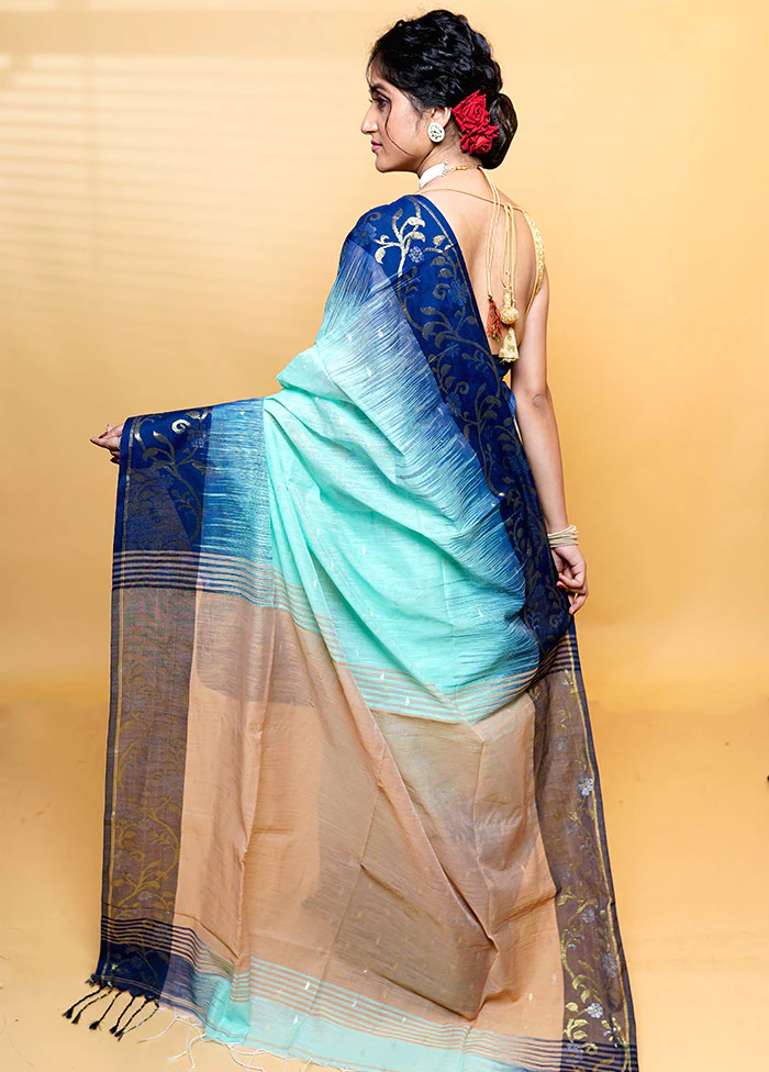 Elegance is when the inside is as beautiful as the outside Presenting, this blue color Cotton saree, made with blended cotton fabric which will give you a comfortable yet attractive look. The best part of this saree is its zari woven. Comes with a matching blouse piece. Add some matching accessories to complete your look.