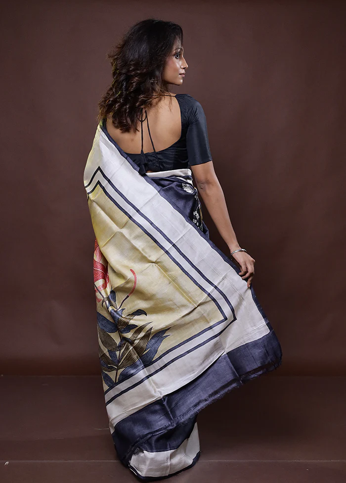Tussar silk, also known as Kosa silk, is derived from the silk produced by the larvae of several species of silk moths, primarily the Antheraea mylitta moth, which is native to India. The term Kosa is derived from the Sanskrit word Kosha, which means cocoon. Tussar silk was highly valued for its natural sheen, texture, and durability. The weaving flourished in various regions of India, including Bihar, Jharkhand, West Bengal, and Odisha. Each region developed its own unique techniques and styles of tussar silk weaving, resulting in a diverse range of designs and patterns.